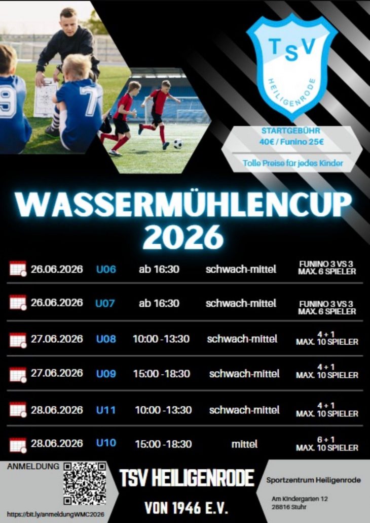 Der TSV Heiligenrode von 1946 e.V. (Gemeinde Stuhr, Landkreis Diepholz) veranstaltet seit 2014 alljährlich den Wassermühlen-Cup. Im Rahmen dieser mehrtägigen Veranstaltung werden Jugendfußballturniere für Mannschaften der Altersklassen G- bis E-Jugend durchgeführt.